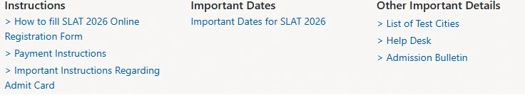 - Registration End Date: The last date to register for SLAT 2026 is November 30,2025 (Sunday). Ensure that you complete your application before this deadline.