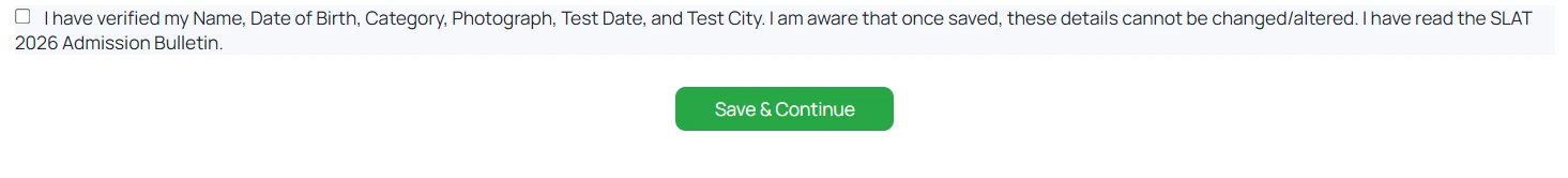 After successful registration, you will get an email and SMS including your SLAT ID and password. Use this SLAT ID for all communications regarding the SLAT 2026 entrance test or the admission procedure.