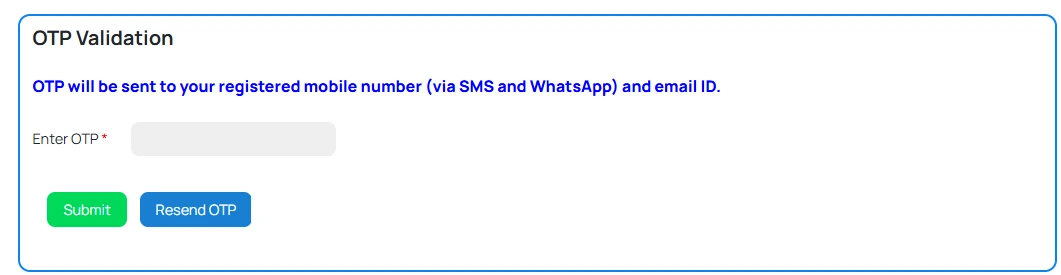 Click on ‘Save & Continue’. An OTP will be sent to the mobile number and email id that you have entered.